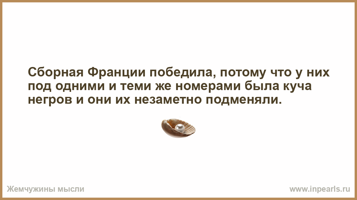 Сборная Франции победила, потому что у них под одними и теми же номерами была куча негров и они их незаметно подменяли.