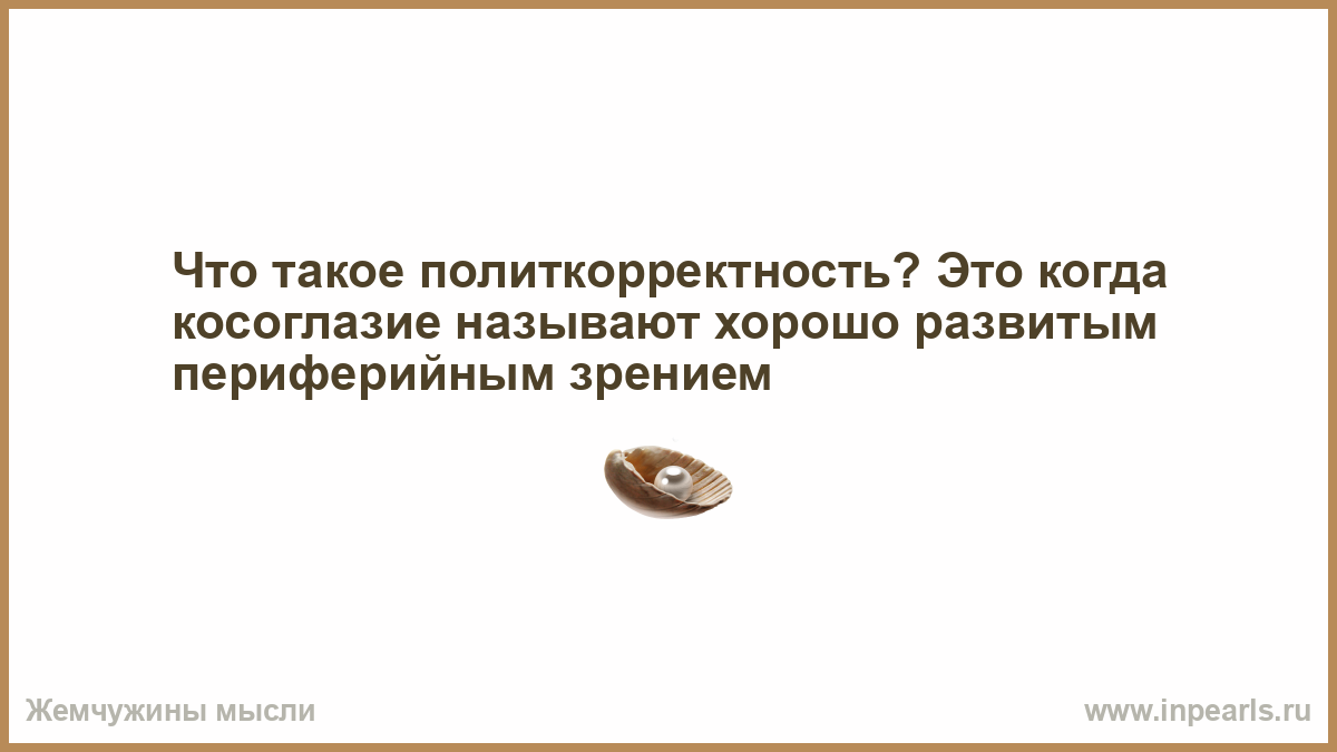 Что такое политкорректность? Это когда косоглазие называют хорошо развитым периферийным зрением