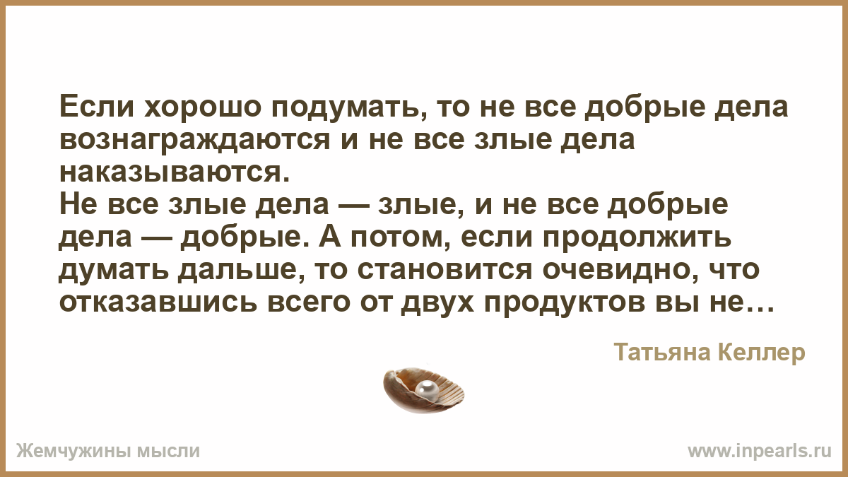 Если хорошо подумать, то не все добрые дела вознаграждаются и не все злые дела наказываются.