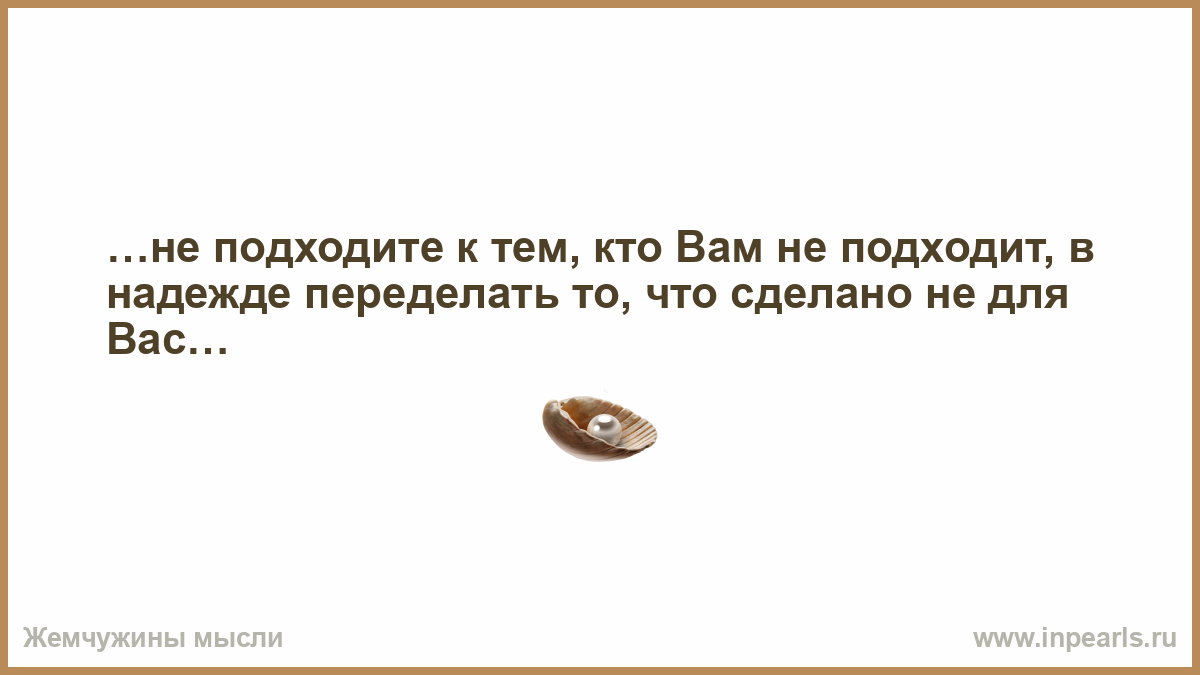 …не подходите к тем, кто Вам не подходит, в надежде переделать то, что сделано не для Вас…