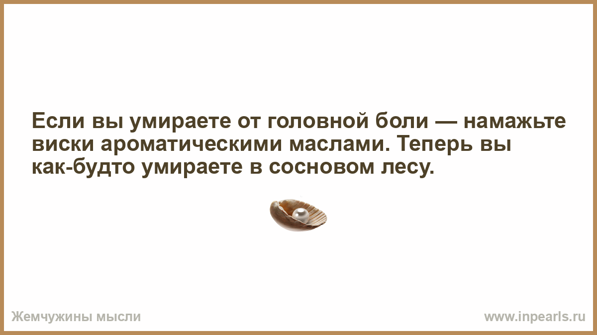 Если вы умираете от головной боли — намажьте виски ароматическими маслами. Теперь вы как-будто умираете в сосновом лесу.