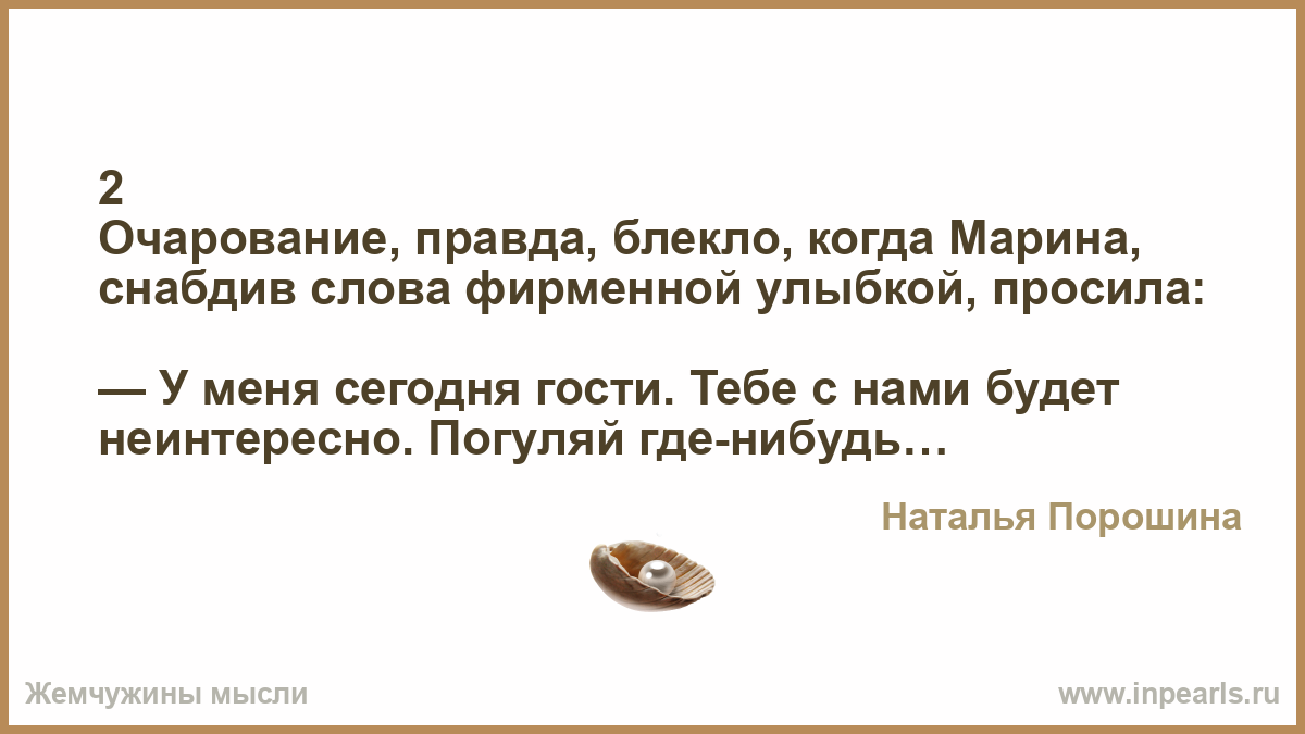 — У меня сегодня гости. Тебе с нами будет неинтересно. Погуляй где-нибудь…