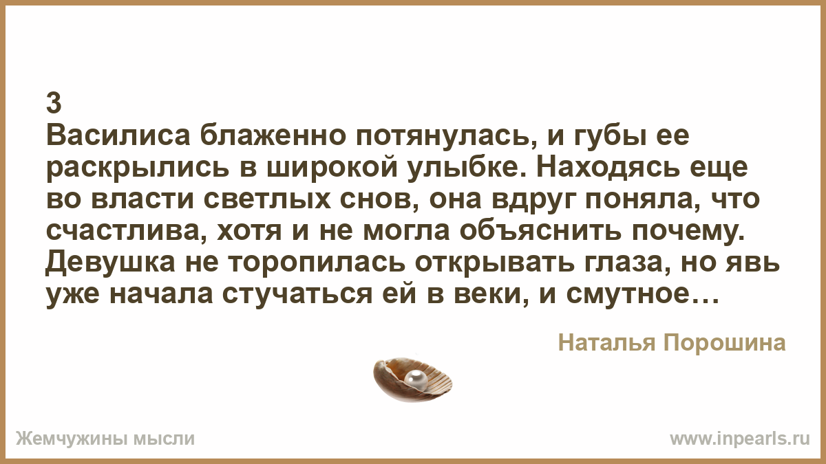 Василиса блаженно потянулась, и губы ее раскрылись в широкой улыбке. Находясь еще во власти светлых снов, она вдруг поняла, что счастлива, хотя и не могла объяснить почему. Девушка не торопилась открывать глаза, но явь уже начала стучаться ей в веки, и смутное вначале воспоминание неожиданно ярко вспыхнуло в ее сознании.