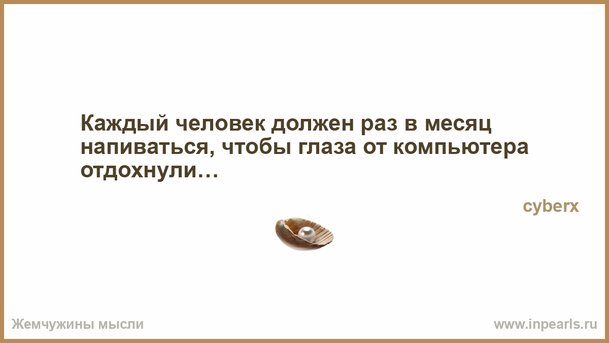 Каждый человек должен раз в месяц напиваться, чтобы глаза от компьютера отдохнули…