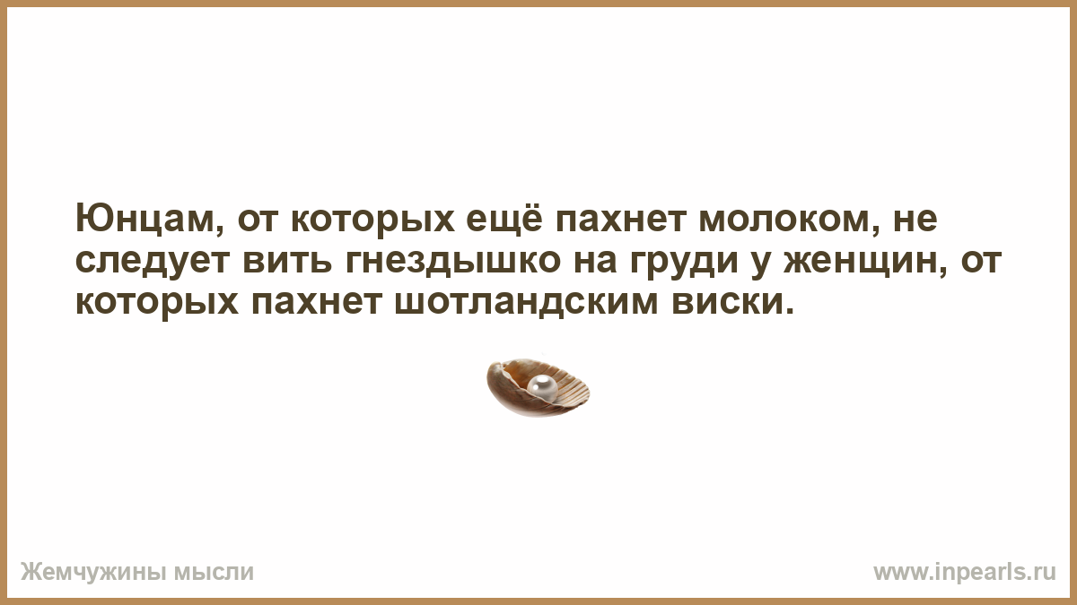 Юнцам, от которых ещё пахнет молоком, не следует вить гнездышко на груди у женщин, от которых пахнет шотландским виски.