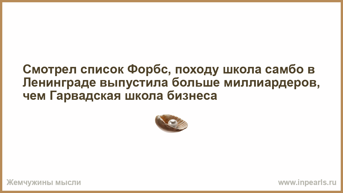 Смотрел список Форбс, походу школа самбо в Ленинграде выпустила больше миллиардеров, чем Гарвадская школа бизнеса