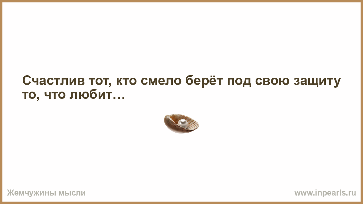 Счaстлив тот, кто смело берёт под свою защиту то, что любит…