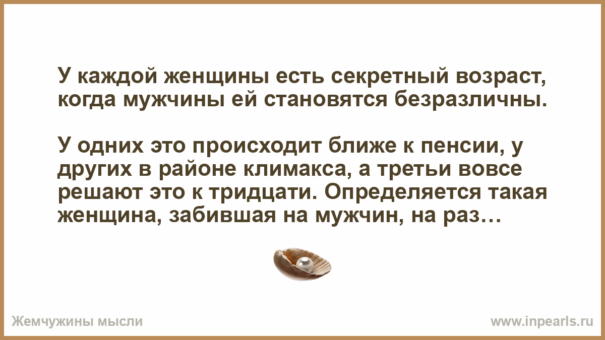 У каждой женщины есть секретный возраст, когда мужчины ей становятся безразличны.