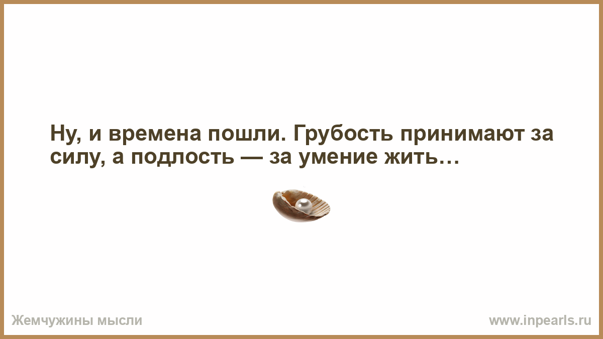 Ну, и времена пошли. Грубость принимают за силу, а подлость — за умение жить…