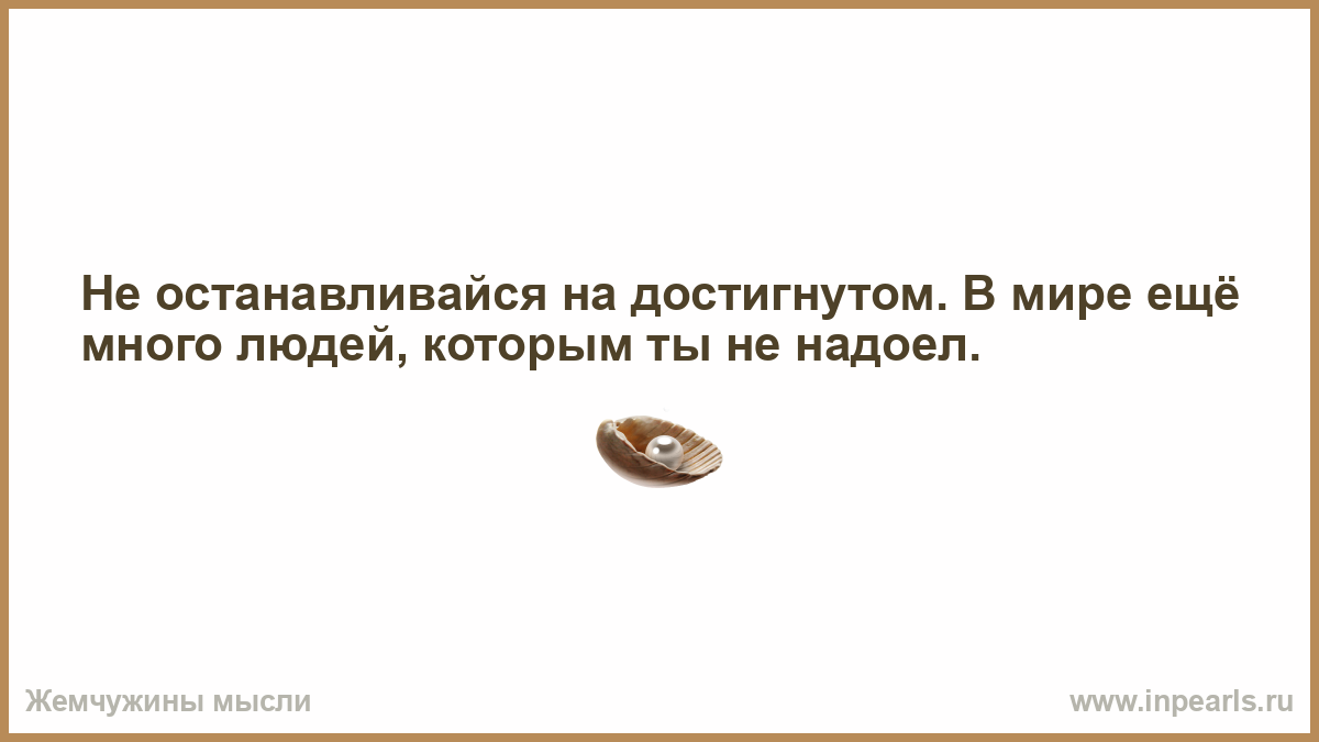 Не останавливайся на достигнутом. В мире ещё много людей, которым ты не надоел.