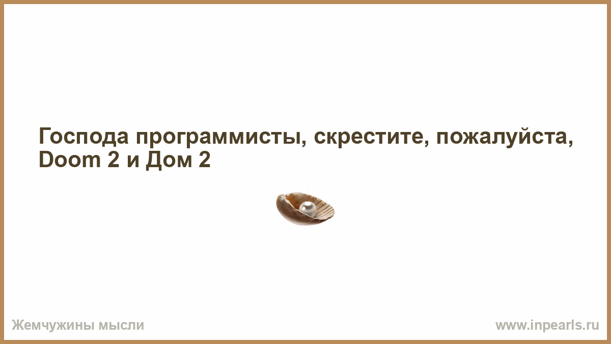 Господа программисты, скрестите, пожалуйста, Doom 2 и Дом 2