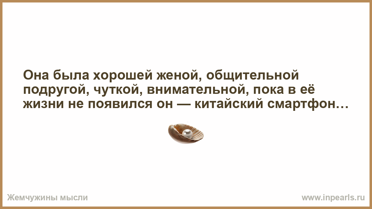 Она была хорошей женой, общительной подругой, чуткой, внимательной, пока в её жизни не появился он — китайский смартфон…
