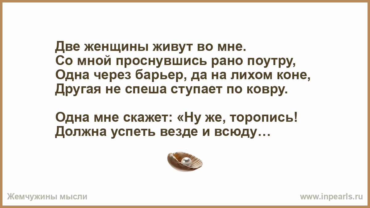 Еще один интересный вариант на тему "Две женщины живут во мне"...