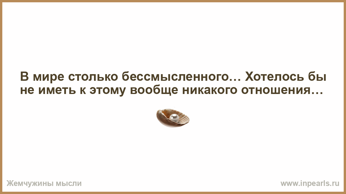 В мире столько бессмысленного… Хотелось бы не иметь к этому вообще никакого отношения…