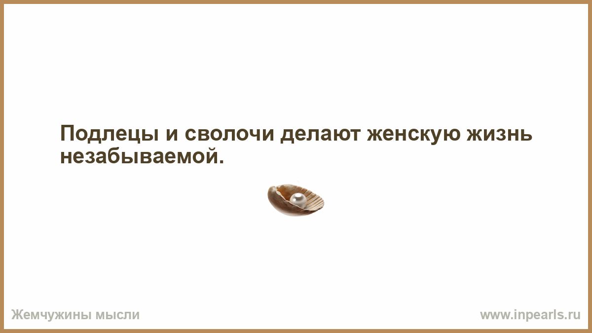 Подлецы и сволочи делают женскую жизнь незабываемой.