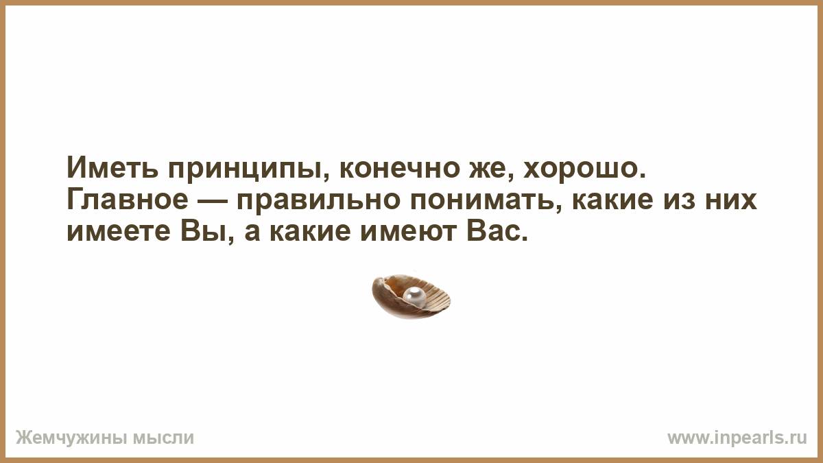 Иметь принципы, конечно же, хорошо. Главное — правильно понимать, какие из них имеете Вы, а какие имеют Вас.