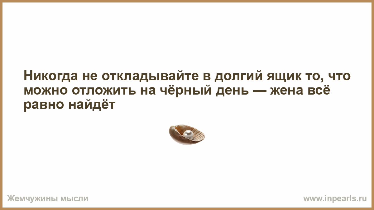Никогда не откладывайте в долгий ящик то, что можно отложить на чёрный день — жена всё равно найдёт