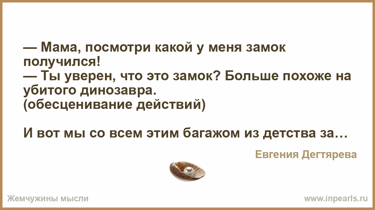 И вот мы со всем этим багажом из детства за плечами выходим во взрослую жизнь и начинаем обесценивать себя и других.