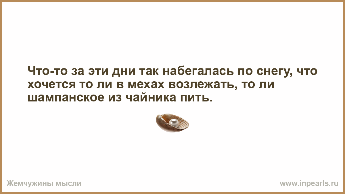 Что-то за эти дни так набегалась по снегу, что хочется то ли в мехах возлежать, то ли шампанское из чайника пить.