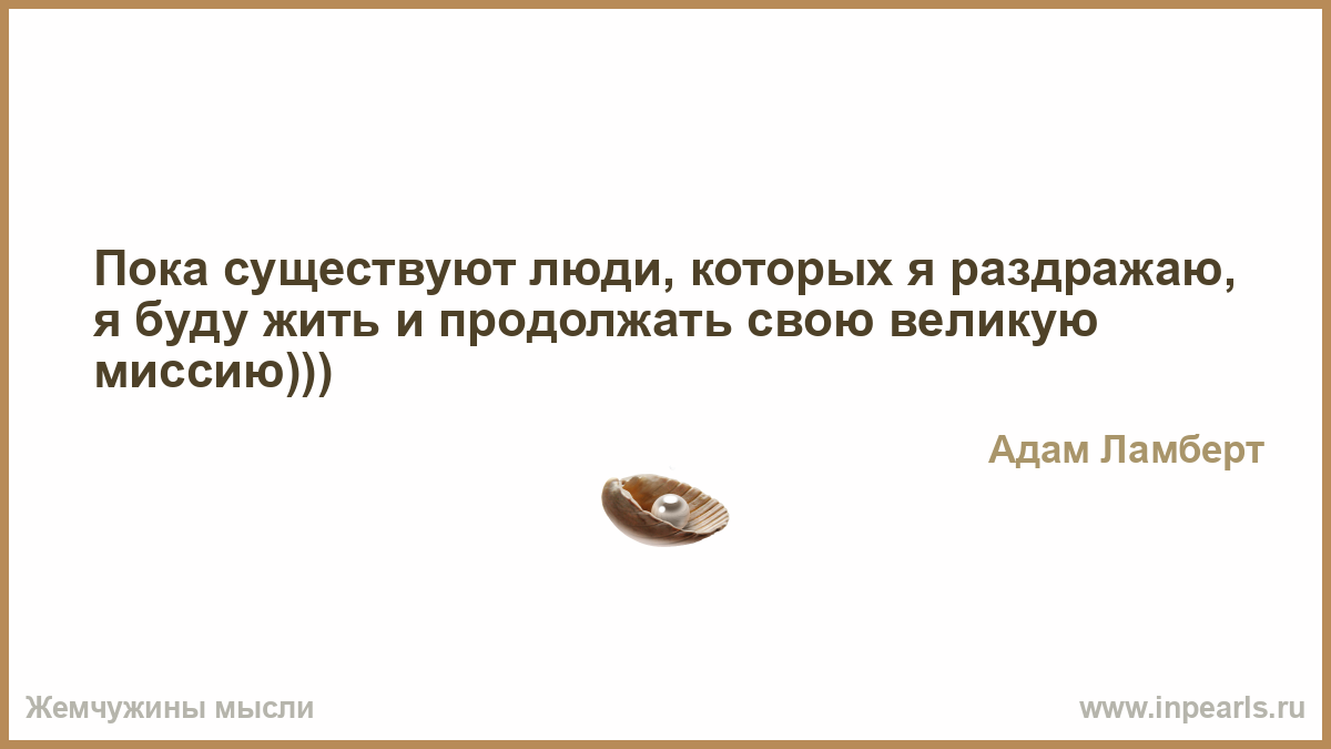 Пока существуют люди, которых я раздражаю, я буду жить и продолжать свою великую миссию)))