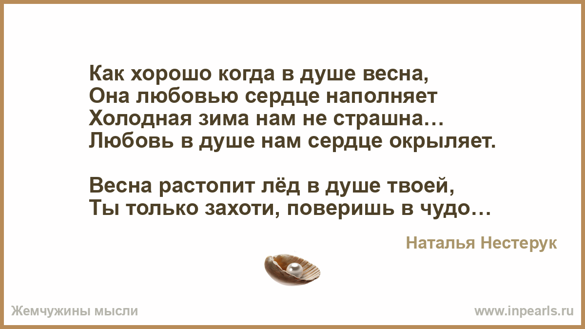 Как хорошо когда в душе весна,