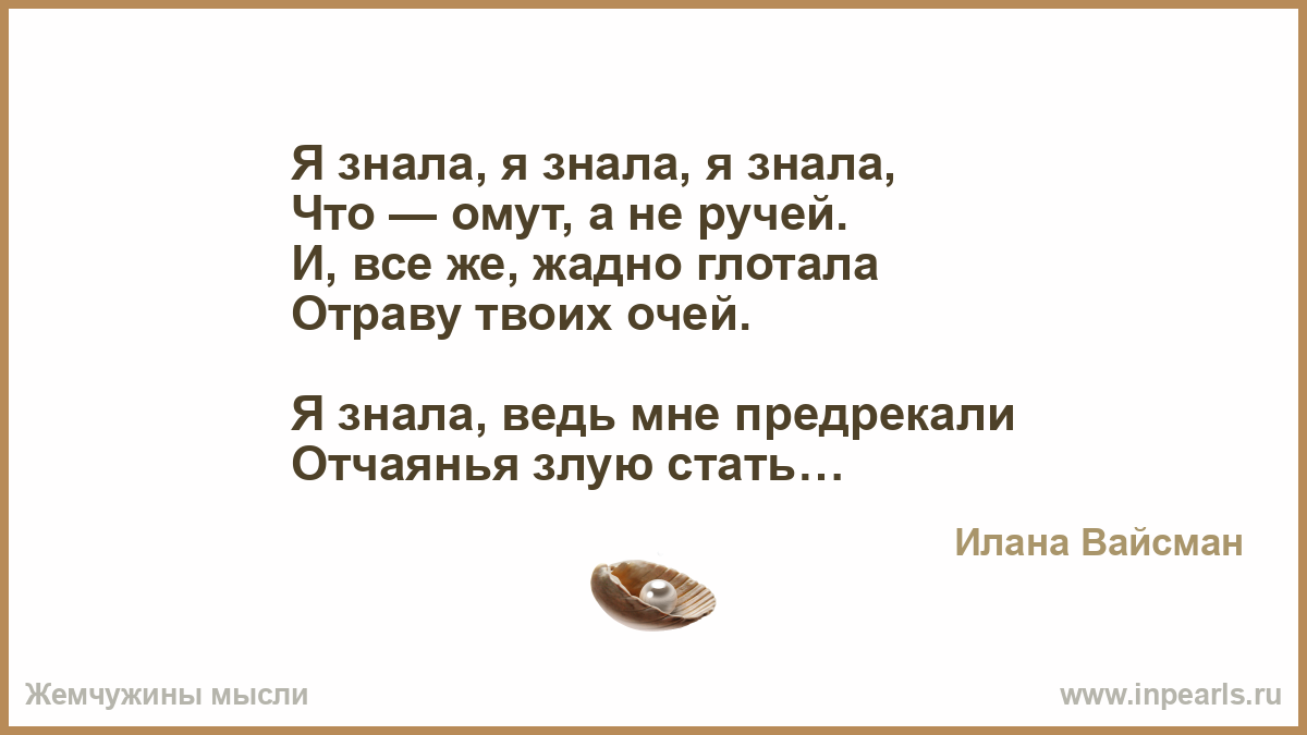 Я знала, я знала, я знала,