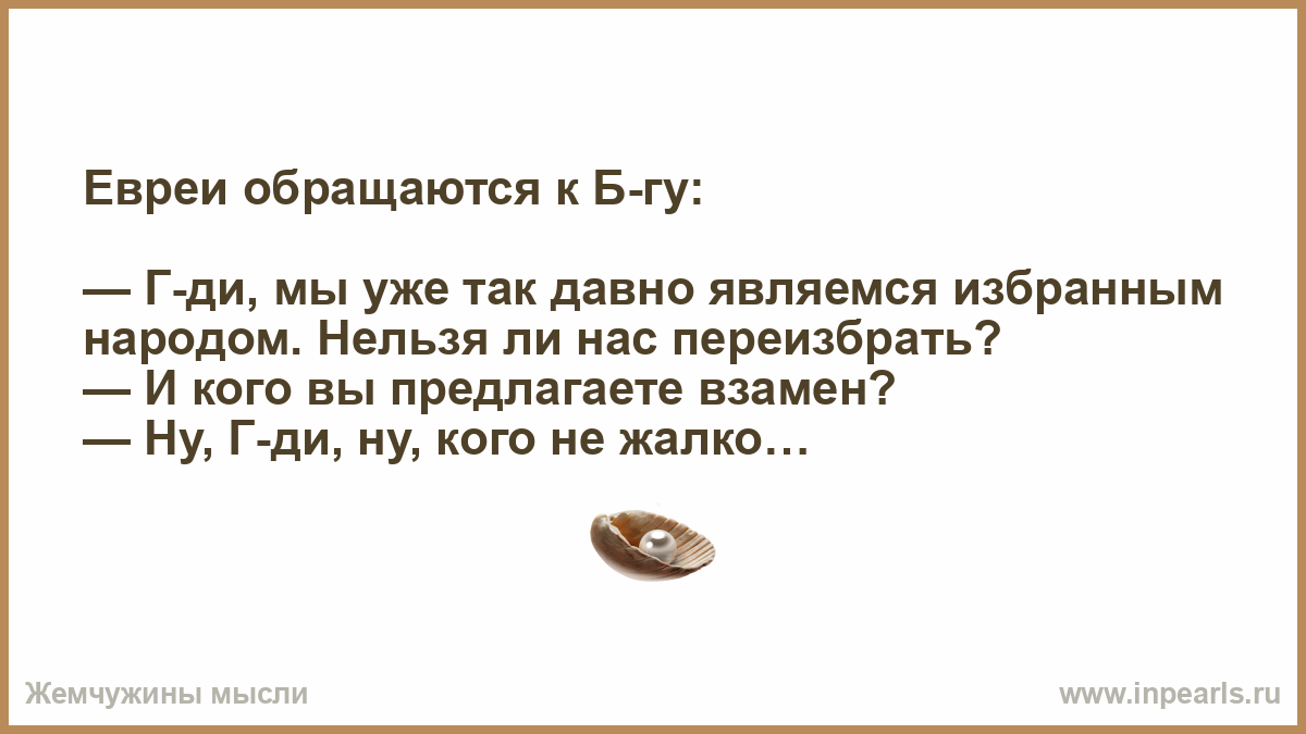 — Г-ди, мы уже так давно являемся избранным народом. Нельзя ли нас переизбрать?