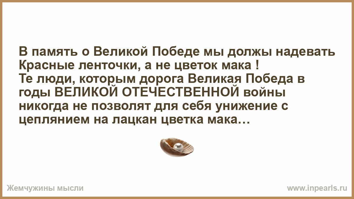 Те люди, которым дорога Великая Победа в годы ВЕЛИКОЙ ОТЕЧЕСТВЕННОЙ войны никогда не позволят для себя унижение с цеплянием на лацкан цветка мака.