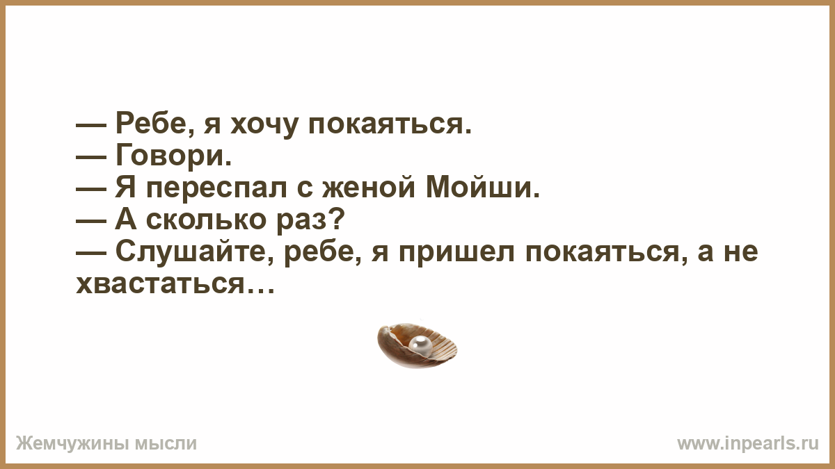 — Слушайте, ребе, я пришел покаяться, а не хвастаться…