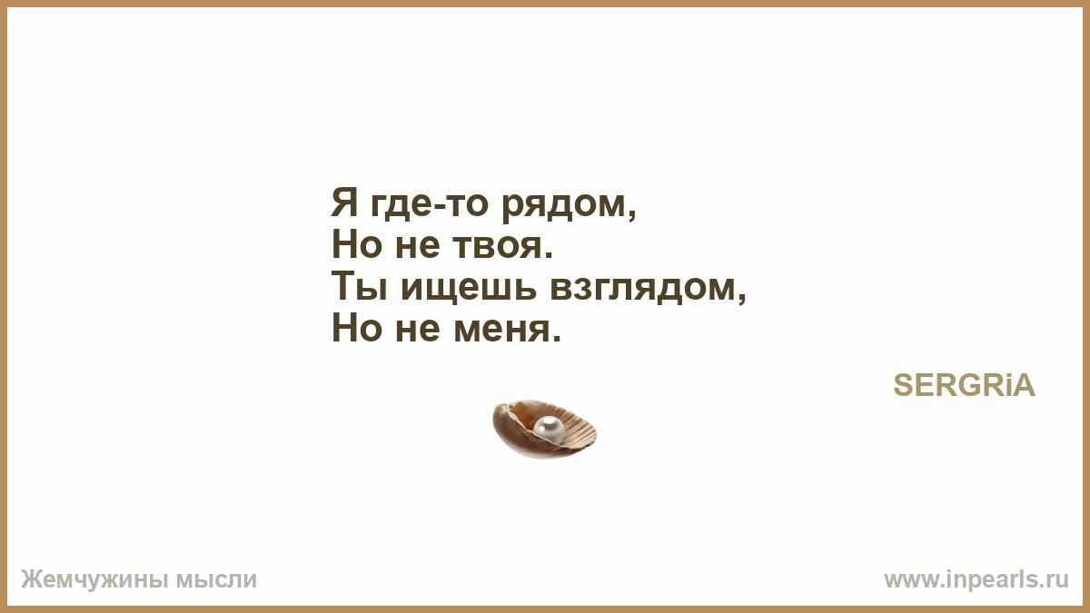 Я где-то рядом, Но не твоя. Ты ищешь взглядом, Но не меня.