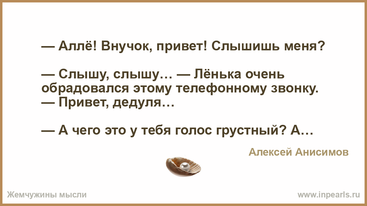 — Слышу, слышу… — Лёнька очень обрадовался этому телефонному звонку. — Привет, дедуля…