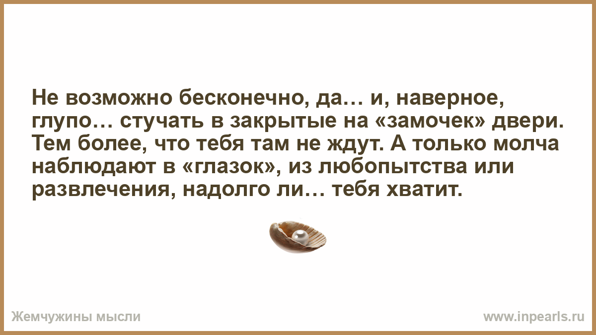 Не возможно бесконечно, да… и, наверное, глупо… стучать в закрытые на «замочек» двери. Тем более, что тебя там не ждут. А только молча наблюдают в «глазок», из любопытства или развлечения, надолго ли… тебя хватит.