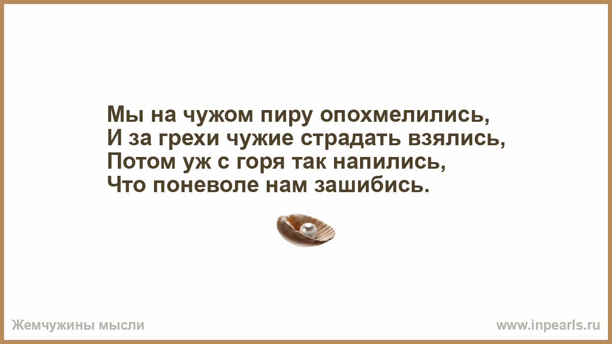 Грехи других судить Вы так усердно рвётесь, начните со своих и до чужих не доберётесь.