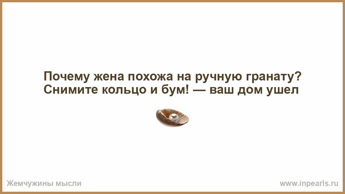 Почему жена похожа на ручную гранату? Снимите кольцо и бум! — ваш дом ушел