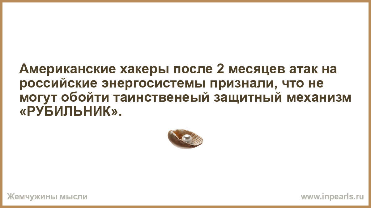 Американские хакеры после 2 месяцев атак на российские энергосистемы признали, что не могут обойти таинственеый защитный механизм «РУБИЛЬНИК».