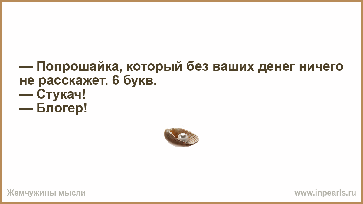 — Попрошайка, который без ваших денег ничего не расскажет. 6 букв.