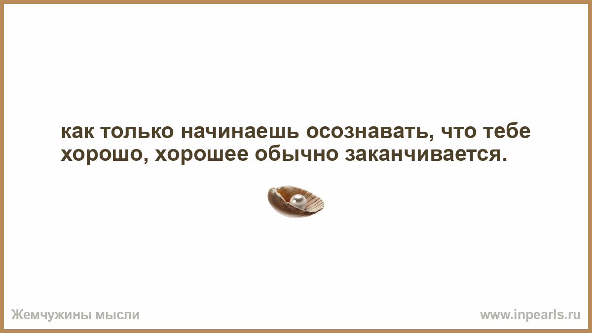 как только начинаешь осознавать, что тебе хорошо, хорошее обычно заканчивается.