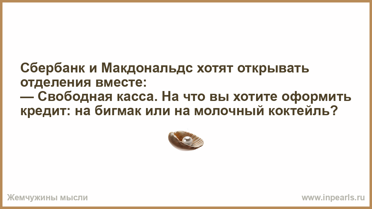 — Свободная касса. На что вы хотите оформить кредит: на бигмак или на молочный коктейль?