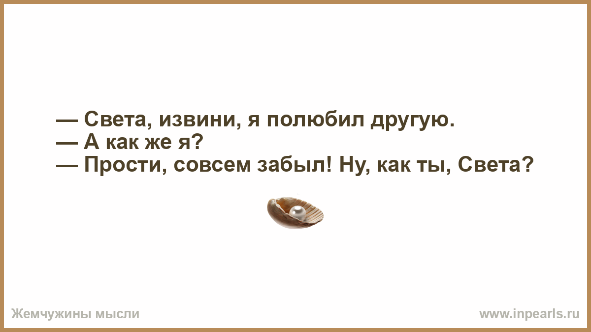 — Света, извини, я полюбил другую. — А как же я? — Прости, совсем забыл! Ну, как ты, Света?