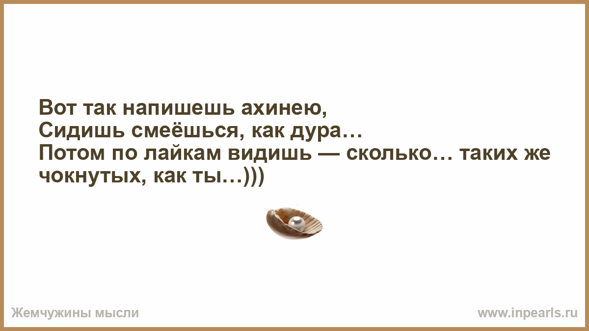 Я осознаю вобщем, что здесь в жемчужинах собраны творческие люди. И неважно в какой степени у каждого талант, просто приятно читать хорошие стихи и мысли. Сама иногда что-то выдаю, больше с иронией.