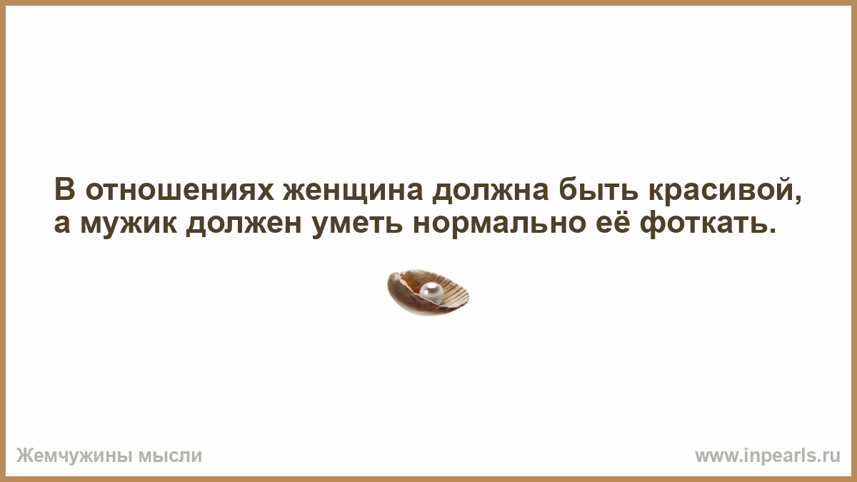 В отношениях женщина должна быть красивой, а мужик должен уметь нормально её фоткать.
