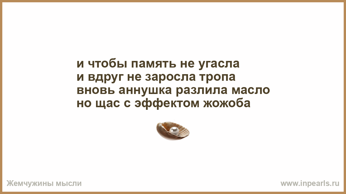 и чтобы память не угасла и вдруг не заросла тропа вновь аннушка разлила масло но щас с эффектом жожоба
