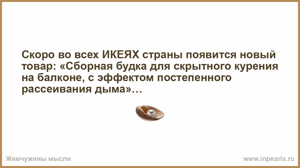 Скоро во всех ИКЕЯХ страны появится новый товар: «Сборная будка для скрытного курения на балконе, с эффектом постепенного рассеивания дыма»…