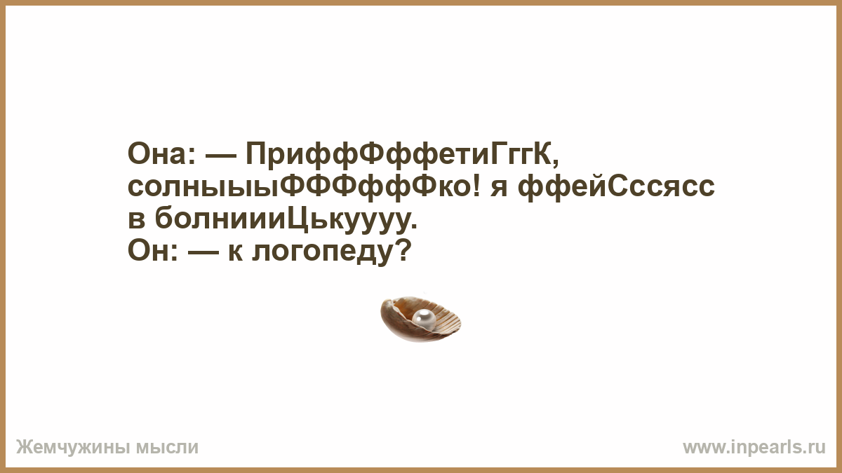 Она: — ПриффФффетиГггК, солныыыФФФффФко! я ффейСссясс в болниииЦькуууу.