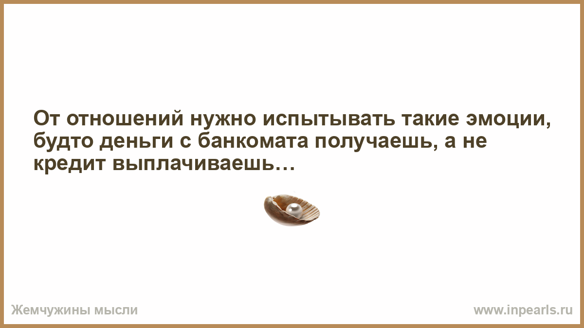 От отношений нужно испытывать такие эмоции, будто деньги с банкомата получаешь, а не кредит выплачиваешь…