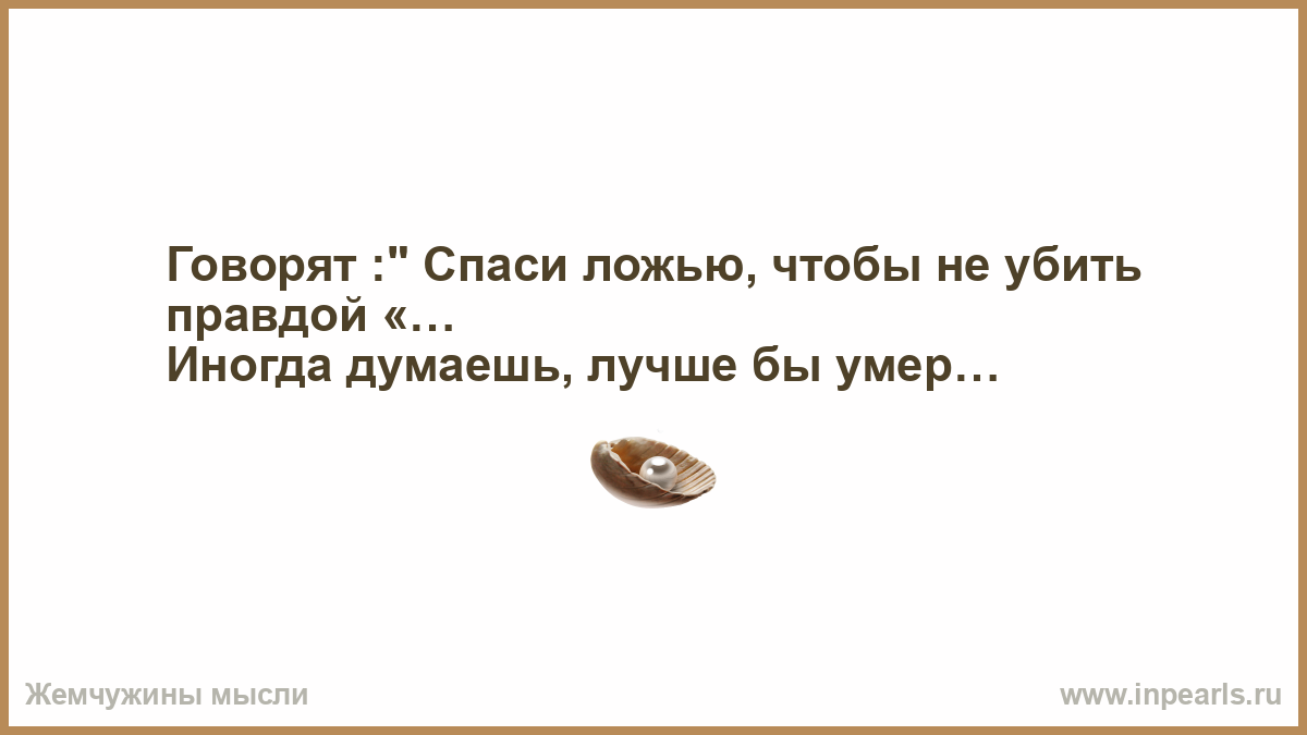 Говорят :" Спаси ложью, чтобы не убить правдой «… Иногда думаешь, лучше бы умер…