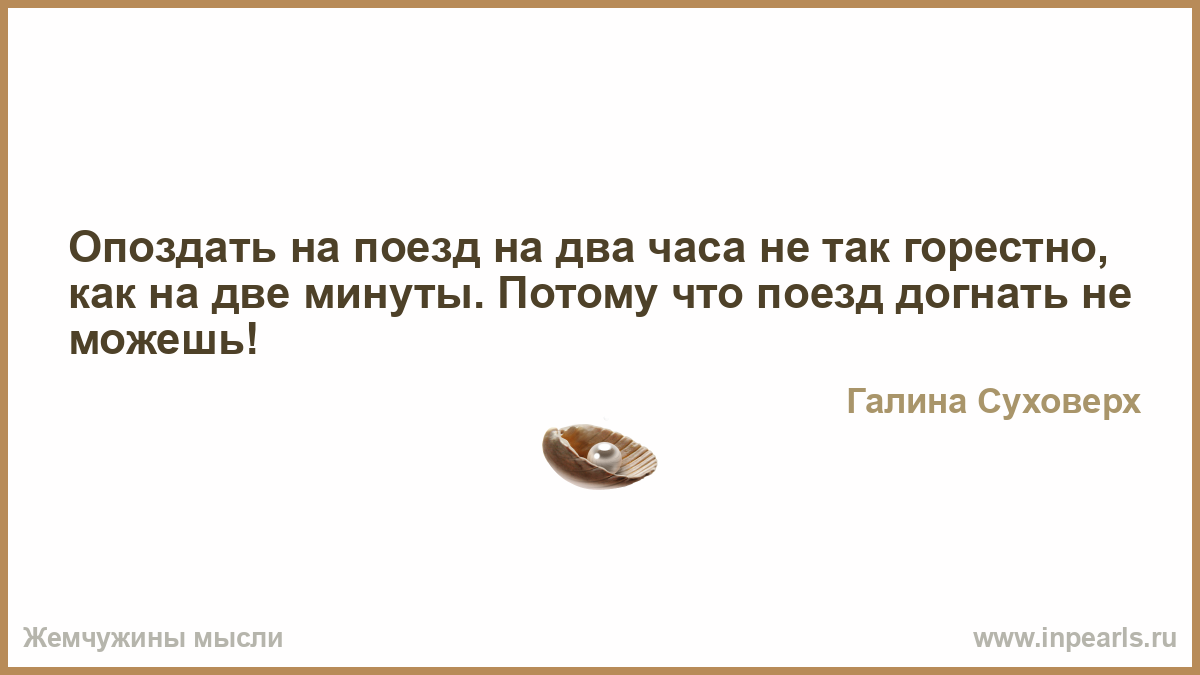Опоздать на поезд на два часа не так горестно, как на две минуты. Потому что поезд догнать не можешь!