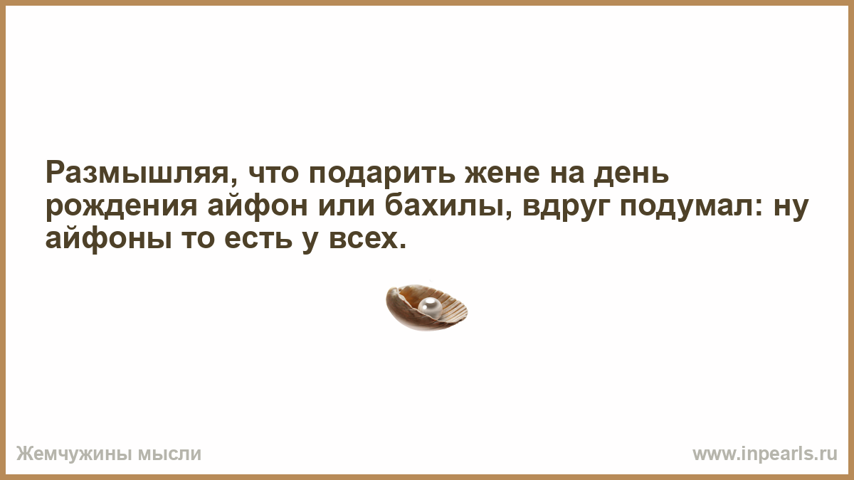 Размышляя, что подарить жене на день рождения айфон или бахилы, вдруг подумал: ну айфоны то есть у всех.