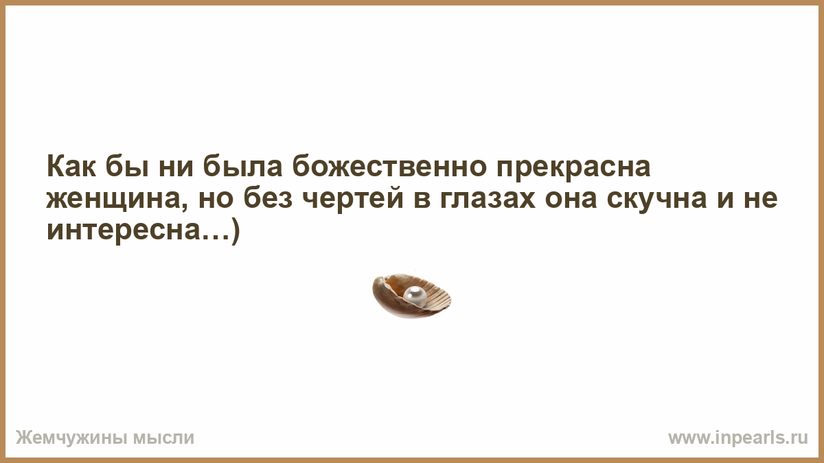Как бы ни была божественно прекрасна женщина, но без чертей в глазах она скучна и не интересна…)