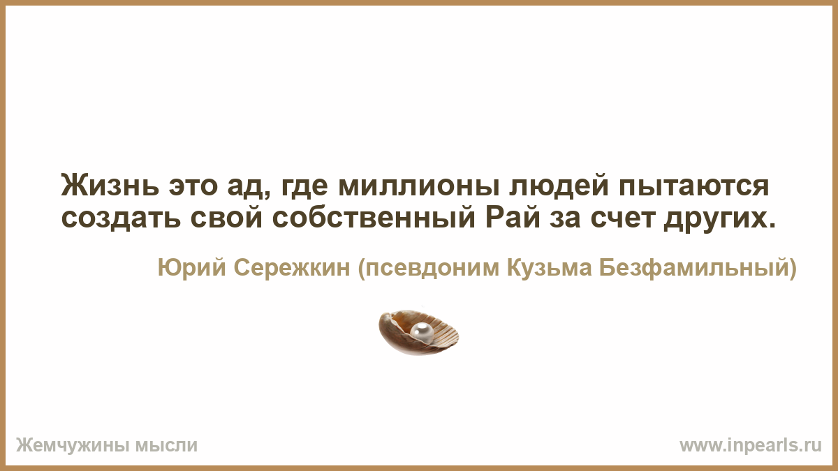 Жизнь это ад, где миллионы людей пытаются создать свой собственный Рай за счет других.